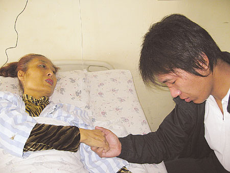 其實,早在2006年,在母親患病中期,兒子常津銘就從網上查到關于肝臟移植手術的資料,但沒想到母親的病真的發(fā)展到這一步。當看著往日的漂亮媽媽皮膚黑黃,人也越發(fā)消瘦,兒子的心里難受極了。他安慰母親:“老媽,你放心,需要換肝我一定給你!碑敃r,媽媽愣住了:“兒啊,你胡說什么,媽都這么大年紀了,你以后的路還長著呢!”“不行,老媽,我能救你而不救,我會遺憾一輩子的!”