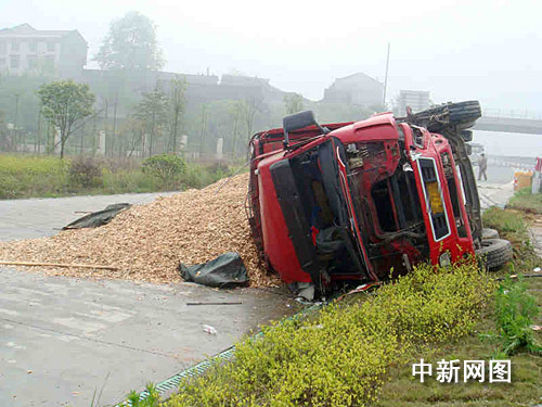 經(jīng)過詢問駕駛員得知,該車核載9.8噸實(shí)載18噸,駕駛員駕車從廣西桂林運(yùn)輸貨物到湖南,一路沒有休息,本想進(jìn)安江服務(wù)區(qū)進(jìn)行休息,但因?yàn)閲?yán)重超載和疲勞駕駛,加上進(jìn)服務(wù)區(qū)時(shí)車速較快,看到前方有車輛在減速,駕駛員操作失誤從而車輛沖上草坪,撞到護(hù)欄后側(cè)翻在服務(wù)區(qū)入口。