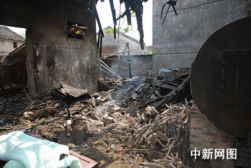 由于爆炸產生的巨大沖擊力,事故現(xiàn)場一片狼藉,到處都是破碎的磚瓦,房子的屋頂也因為爆炸時產生的沖力給震碎,現(xiàn)場不時的有破瓦掉落。同時,記者從圍觀群眾處了解到,事故發(fā)生時,在旁邊作業(yè)的一工人正被壓在碎瓦堆里,被壓著已有半個小時,生死未卜。
