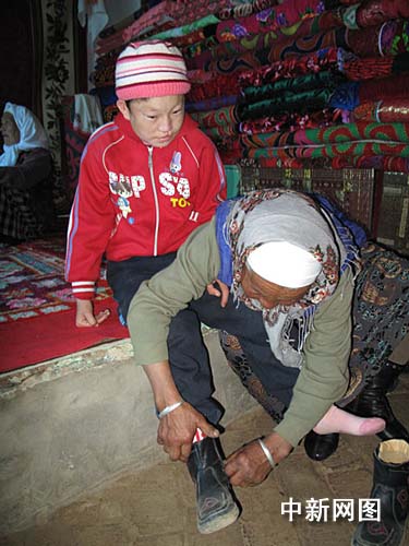 如今,20歲的麥爾孜依仍然不會(huì)說話,走起路來?yè)u搖晃晃,除了吃飯以外,生活完全不能自理,但能聽懂簡(jiǎn)單的哈薩克語(yǔ)。記者在采訪中發(fā)現(xiàn),媽媽比依臺(tái)坎始終牽著麥爾孜依的手,時(shí)不時(shí)的為麥爾孜依擦擦鼻涕,整理帽子。麥爾孜依則時(shí)不時(shí)的對(duì)父母經(jīng)常報(bào)以燦爛而羞澀的笑容。