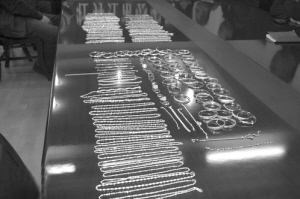 4月19日下午15時(shí)許,牡丹江東安公安分局刑警大隊(duì)二中隊(duì)干警在工作中得知,一名四十左右歲男子身上有大量金首飾,在一個(gè)體加工首飾店內(nèi)急于出售。警方立即趕往該首飾加工店,將可疑男子帶回訊問,在審查中從其包內(nèi)發(fā)現(xiàn)大量金項(xiàng)鏈,戒指、耳環(huán)、手鐲、腳鏈等白金黃金飾品,經(jīng)初步估算價(jià)值近70萬(wàn)元左右。