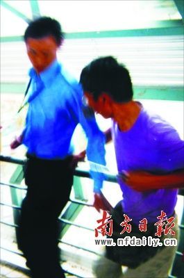 昨天下午2時(shí)07分,深圳前進(jìn)二路沃爾瑪門口天橋上,新安街道城管執(zhí)法隊(duì)員練士滔被攤販老帥一刀從左腰背插入,刺穿前胸,轉(zhuǎn)過身后,他的右胸又挨了第二刀。老帥隨后逃跑,其妻張金群被警方帶走。