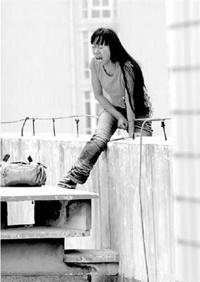 “許昌一市民打來長(zhǎng)途電話稱,一女子在鄭州市友愛路中原商貿(mào)城中的中原商務(wù)樓頂,想跳樓自殺!弊蛉14時(shí)許,特巡警二大隊(duì)中隊(duì)長(zhǎng)劉洪剛接到110指令后,立即帶領(lǐng)3名民警趕到現(xiàn)場(chǎng)。只見,一長(zhǎng)發(fā)女子坐在樓頂?shù)膲,不停地打著電話,情緒很是激動(dòng)。