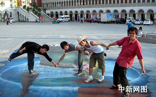 “城市立體畫采用與一般繪畫截然相反的透視技法,參觀者見到的畫面不是平面的,而是具有三維立體的視覺效果!表n承是這個文化創(chuàng)意的發(fā)起人,他告訴記者,這種三維立體效果在照相機的鏡頭里尤為突出,讓人感覺不是拍攝的畫作,而是實景的再現(xiàn)。