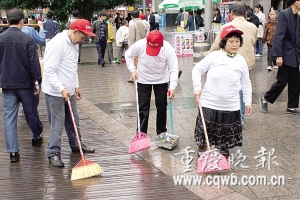 在“五一”期間,我市500多名“愛(ài)心亭殘疾人幫扶培訓(xùn)中心”的學(xué)員,分成30個(gè)隊(duì)伍,在渝中區(qū)、江北區(qū)、渝北區(qū)、南岸區(qū)、九龍坡區(qū)、沙坪壩區(qū)等主城街道,開(kāi)展“我勞動(dòng),我快樂(lè)”的活動(dòng),上街頭義務(wù)清掃。(記者 李珩 攝影報(bào)道)