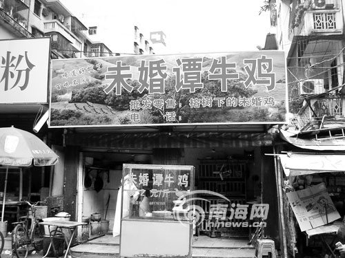 雞飯店在?陔S處可見,可有一家打著“未婚譚牛雞”的小飯店,您恐怕沒見過吧?。