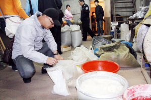 經過一天的檢查,造假窩點的負責人一直沒有露面;槿藛T將全部藥品原料、成品裝袋,準備沒收。幾名工人不斷地阻攔稽查人員,理由是“這些藥還沒干燥好,裝走了就不能賣了。”