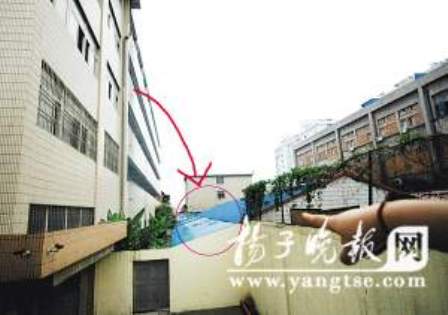 昨天上午9點(diǎn)多,記者接到報(bào)料后趕到現(xiàn)場(chǎng),當(dāng)時(shí)距離該名男生跳樓還不足半小時(shí),受傷男生已被送到南京中大醫(yī)院搶救。據(jù)一位目擊該男生跳樓后情形的學(xué)校負(fù)責(zé)人介紹,當(dāng)時(shí)他正在二樓辦公室看報(bào)紙,只聽見窗外“哐”的一聲響,抬頭一看,竟然看到一名男生砸在附近廠房的彩鋼瓦頂上,將彩鋼瓦頂砸出了一個(gè)大窟窿。所幸該男生沒掉到窟窿里去,人還趴在屋頂上,他似乎還有意識(shí),本能地向屋頂上方挪動(dòng)了幾下身體,這位目擊者還有附近樓上居民看到這情形,還叫那男生“別動(dòng)別動(dòng)……馬上叫人來救你!”那男生隨后就抓住了廠房屋頂?shù)囊桓鶛M梁,就沒再動(dòng)彈了。“從他那時(shí)候的表情看,肯定摔得不輕,連喊救命的力氣都沒了,當(dāng)時(shí)替他捏了把汗,能保命是關(guān)鍵啊!