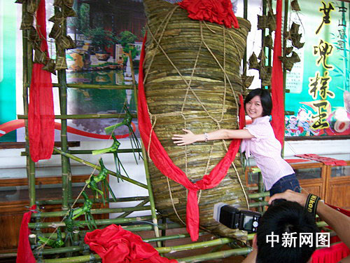詹園一負(fù)責(zé)人對(duì)記者稱:“中山美食馳名天下,但中山特色蘆兜粽卻沒有多少人知道,但凡說到廣東粽子美食,大家印象中就只有肇慶的裹蒸粽了。其實(shí)蘆兜粽無論淵源還是口味都不亞于裹蒸粽!睋(jù)悉,端午小黃金周將近,中山詹園特意推出1.88米高、608斤重的蘆兜粽王,讓游客親自體驗(yàn)中山粽的美味,更欲為中山蘆兜粽一爭(zhēng)“粽”名。