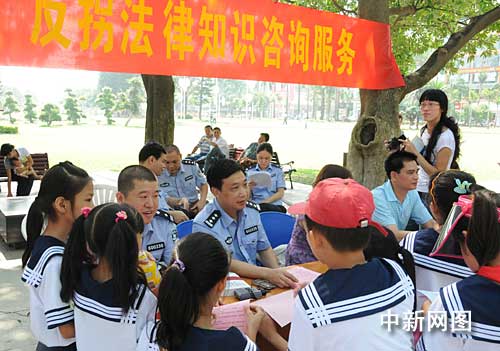 在北部灣廣場,北海市公安局?jǐn)[設(shè)的“反拐”法律知識咨詢服務(wù)臺前,一群小朋友把桌子團(tuán)團(tuán)圍住,就有關(guān)防拐知識認(rèn)真的向民警咨詢起來。小朋友的問題貼近實(shí)際,民警的回答則詳細(xì)易懂。通過交流,民警將一些易于操作、實(shí)際效果明顯的反拐知識教授給小朋友們。