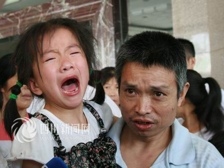 在成都軍區(qū)總醫(yī)院,記者見到了從這場(chǎng)慘烈事故中幸運(yùn)逃生的祖孫倆。哇哇大哭的小女孩依然驚魂未定,不停地叫著媽媽,抱著她的是她的叔公陶守良。陶大爺告訴記者,小女孩的媽媽并沒有在出事的車上,小女孩只是嚇壞了,他和小女孩都只是跳車時(shí)碰傷了一點(diǎn),“但我的老伴還在接受醫(yī)院的搶救!