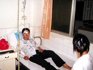 晚上8時(shí)許,記者走進(jìn)了中醫(yī)院的外科病房,除110室的一位女傷者仍在昏迷中外,其余4人均在二樓外科病房接受觀察治療。41歲的李雪×右眼逢了5針,她來(lái)自超竹鎮(zhèn),以踩三輪車載客為生。談起突如其來(lái)的一幕,她說(shuō)一時(shí)間覺(jué)得好像一部推土機(jī)向她推來(lái),以后就失去了知覺(jué)。