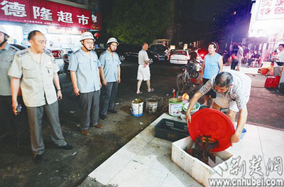 大排檔擠占道路,蝦殼毛豆殼等狼籍遍地,既妨礙交通更影響市容。前晚,武漢市城管局在七城區(qū)同時展開專項(xiàng)整治,要求每區(qū)出動50名執(zhí)法人員,只能采取宣傳、勸說等方式治理占道經(jīng)營。