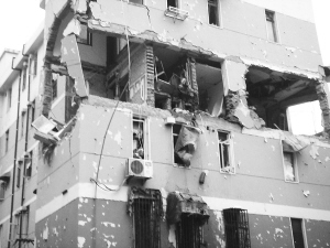 事發(fā)后,樓內(nèi)有居民自行逃出,警方和消防搶險人員趕到后,從中救出了數(shù)名傷員。爆燃產(chǎn)生的巨大沖擊波,還致使樓房旁一根高約15米的電線桿發(fā)生傾斜。供電部門為安全起見,切斷了整個小區(qū)的供電。記者在現(xiàn)場看到,一輛電力搶修車已送來一根新電線桿,準(zhǔn)備待警方勘查完后施工。
