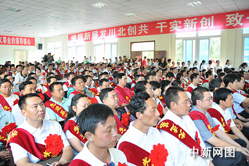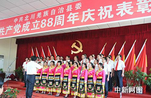 中新網(wǎng)北川6月26日電(王官倫)“沒有共產(chǎn)黨,就沒有災(zāi)區(qū)人民的新家園”。26日,為慶祝中國共產(chǎn)黨建黨八十八周年暨中華人民共和國成立60周年,中共北川羌族自治縣委舉辦了以“感恩祖國, 感謝山東,歌頌偉大的中國共產(chǎn)黨”為主題的慶“七一”表彰大會(huì)暨歌詠比賽。