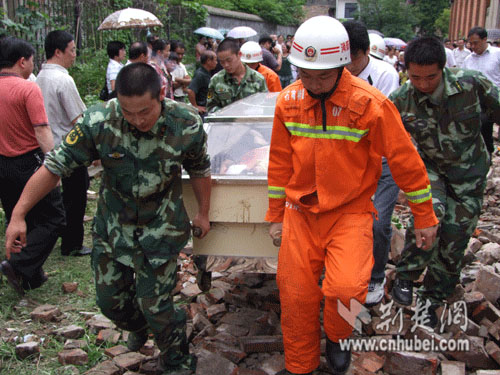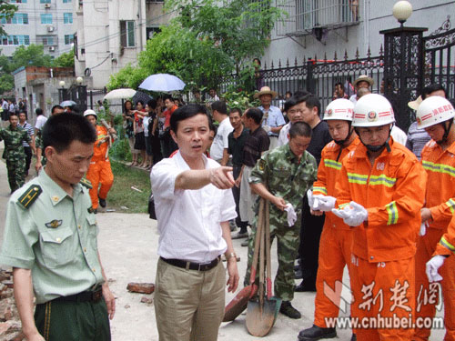 事故發(fā)生后,石首市市委書記鐘鳴、市長張善彩、石首市市委常委、紀委書記張遠梅、公安局長唐敦武迅速趕赴現(xiàn)場,指揮公安、消防、醫(yī)療等部門做好事故處置工作,并組織人員清理現(xiàn)場磚塊。經(jīng)法醫(yī)驗尸后,2名遇難者遺體被消防官兵抬上殯棺送往殯儀館。