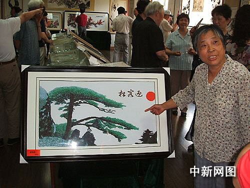 中新網(wǎng)鎮(zhèn)江七月一日電 (李君 王致同) 這是一幅長一米、寬六十厘米的《迎客松》圖,遠(yuǎn)看似乎是照片或油畫,近看確是十字繡品,圖上繡成的翠柏勁松,傲然挺立,引人入勝。令人們難以置信的是,繡品作者竟然是鎮(zhèn)江市八十高齡老翁徐菊生。昨天,作為老人獻(xiàn)給共和國六十華誕的這幅十字繡品《迎客松》,在鎮(zhèn)江市老年活動室“露臉”,令人驚嘆不已。