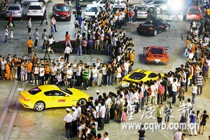 他介紹,這些豪車全部來(lái)自法拉利車友會(huì),是重慶法拉利經(jīng)銷商從全國(guó)組織來(lái)重慶參加一個(gè)車友聚會(huì),并可能在明天市內(nèi)一個(gè)場(chǎng)地舉行一個(gè)內(nèi)部賽車比賽。本來(lái)計(jì)劃共有30輛,結(jié)果只來(lái)了25輛。