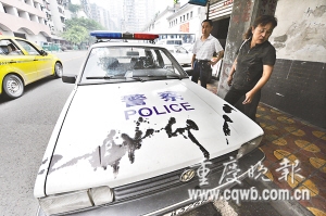 昨日,長航公安局朝天門派出所門前停車場,有不法人員惡作劇:先后在包括兩輛警車在內(nèi)的4輛車上用油墨涂鴉。警方稱,惡作劇者涉嫌故意損毀公私財物,可處10日以上15日以下拘留,并處罰款1000元。