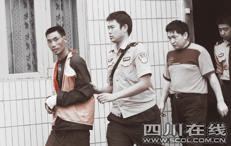 昨日中午12時(shí),劉啟寬穿著彭州市看守所的衣服,戴著手銬,左手包扎著紗布,被警方帶回事發(fā)現(xiàn)場(chǎng)。他個(gè)子高高的,又瘦又黑,沒(méi)有穿鞋,始終低頭不語(yǔ)。就在劉啟寬指認(rèn)現(xiàn)場(chǎng)的時(shí)候,其哥哥劉啟保也回來(lái)了。兩兄弟對(duì)望一眼后,都匆匆把視線移向別處。