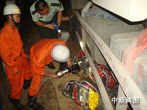 事故發(fā)生后,松滋市公安、消防、交通、公路等部分迅速趕赴現(xiàn)場施救,晚9時30分,消防官兵利用消防液壓剪成功將摩托車車身破開,9時35分,被困者被成功救出。