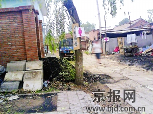 在金盞南村,一處窄小巷口路邊掛著一塊畫著紅色十字標(biāo)志的硬紙殼牌子,與村子里其他地方掛著的“高價收廢品”牌子相比,這塊牌子似乎更加低調(diào),連個漢字都沒有。