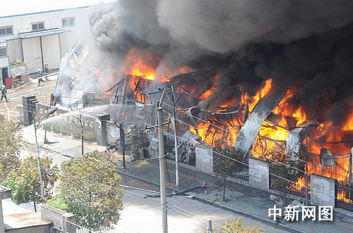 中新網(wǎng)溫州7月19日電(記者 江耘 通訊員 徐行號(hào) 姜嬋娟 劉榮平) 2009年7月19日10時(shí)55分許,浙江溫州龍灣區(qū)農(nóng)業(yè)開(kāi)發(fā)區(qū)文匯路19號(hào)的愛(ài)好筆業(yè)倉(cāng)庫(kù)發(fā)生火災(zāi)。記者發(fā)稿時(shí),大火已經(jīng)燒了7個(gè)小時(shí),過(guò)火面積約達(dá)3000平方米,200余名消防官兵依舊無(wú)法徹底降伏火魔。