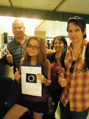加拿大籍旅客羅伯特帶領(lǐng)全家六口來中國觀看日全食奇景。他在辦好入境手續(xù)后告訴邊檢民警:他和4個孩子都是天文愛好者,去年9月就定好了酒店,這次專程帶放假的孩子來觀看“日全食”。