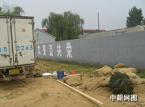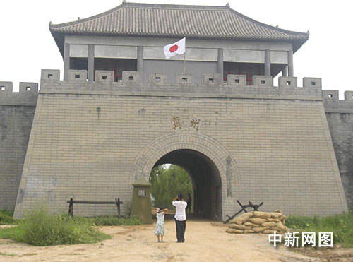 兵法城是該市的一個(gè)旅游景點(diǎn),城門口進(jìn)出的行人很多,很多人對(duì)城門上的日本國旗議論紛紛,還有一些市民掏出手機(jī)進(jìn)行拍照。走進(jìn)兵法城,記者看到院子里有很多“彈藥箱”之類的東西,還有幾個(gè)工人在平整院子,墻壁上刷有“大東亞共榮”的字樣,一問才知道是在拍攝電影。