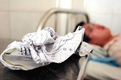 在謝崗人民醫(yī)院四樓住院部,記者見到,江赟的上衣被完全撕破,全身沾滿了淤泥。眼角紅腫,其腦部、頸部、腿部等多處有明顯抓傷痕跡。而南方都市報記者莫曉東,大腿青腫,頸部、全身等也有明顯被抓傷痕跡。據(jù)兩人的病歷顯示:江赟,左眼骨脹腫、左頸部抓傷、全身多處軟組織損傷。莫曉東,左耳后腫脹、多處皮膚破損、右大腿腫脹。主治醫(yī)生表示,兩人全身多處受傷,特別是本報見習(xí)記者江赟,在今年5月剛做完左聽小骨手術(shù),而在昨天又被人重擊頭部,需要做進一步觀察治療。 (記者唐波、易建成)