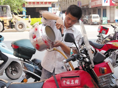 加油是件非常嚴(yán)謹(jǐn)?shù)幕顑,在安全方面來不得半點馬虎,但近日,網(wǎng)友曝光在開縣有一個加油站,司機們自己提著個大水壺向摩托車?yán)锏褂,幾個司機圍著一個水壺團團轉(zhuǎn),現(xiàn)場就像茶館一樣熱鬧!白弑槿珖,可能也找不出第二家采用這種加油方式的”,網(wǎng)友稱其為中國“最牛加油站”。