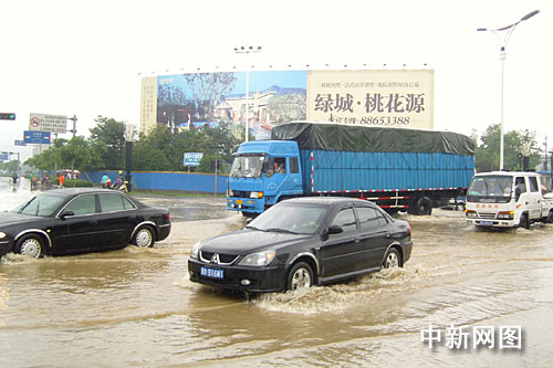 中新網(wǎng)杭州8月10日電(記者 龔讀法 見(jiàn)習(xí)記者 王磊 實(shí)習(xí)生 馬杰)8月9日,受第八號(hào)臺(tái)風(fēng)“莫拉克”影響,杭州降水量劇增,杭州不少道路遭雨水淹沒(méi)。8月10日,“莫拉克”對(duì)杭州的影響開(kāi)始減弱,杭州道路積水有所緩和,而之前積水最嚴(yán)重的天目山路永和路口足膝的積水,也開(kāi)始下降,各部門(mén)正積極排澇工作中。