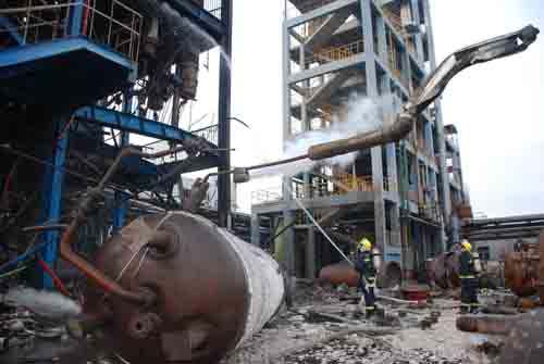 8月18日下午17時許,金華市湯溪鎮(zhèn)的婺城開發(fā)區(qū)浙江星騰化工有限公司一車間發(fā)生爆炸事故,造成該廠1人死亡,2名人員受傷。而爆炸產(chǎn)生的沖擊波,殃及隔壁數(shù)家工廠,其中距離爆炸點較近的詹士機配廠損失較大。