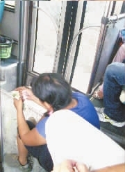 昨日下午,—位身著藍上衣、黑色短褲、戴著—副眼鏡的中年婦女,在洪山廣埠屯站上了—輛728路公汽,—上車就開始哭天喊地:“謝謝大家,謝謝大家,救救我媽媽吧,她要死了,沒錢看病,求求大家了!”女乞丐滿臉淚水,邊下跪邊磕頭,不少乘客紛紛解囊相助。