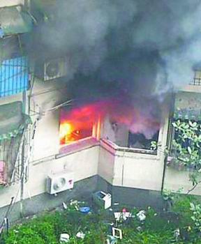 1棟1單元3樓11號的住戶鄧女士當時正在洗頭。突然,她聽到樓下傳來一聲打雷似的響聲。顧不上剛抹的洗發(fā)水,鄧女士一把抱著女兒就朝頂樓的平臺上跑。平臺已有10多名住戶,往下一看,一股火苗伴著濃煙,從1單元1樓一戶人家的廚房往外躥,并逐漸蔓延到二樓。