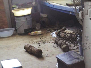 昨天中午12點(diǎn)左右,一個(gè)收廢舊的來到這家工地,說是收廢舊,其實(shí)是想收點(diǎn)文物,因?yàn)楣さ亟?jīng)常能挖出些瓶瓶罐罐的。一個(gè)民工說他有好東西,就把收廢舊的帶到了宿舍,從床下掏出個(gè)銹跡斑斑的東西,說這些陶罐能值多少錢?收廢舊仔細(xì)一看,哪里是什么陶罐,明明是枚炮彈,而且床下還有3枚。乖乖!敢情前天一夜我們都睡在炮彈上,同宿舍的民工都炸了。工地的安全員趕到,立刻報(bào)警。不久警察趕到,封鎖了現(xiàn)場,并通知了排爆大隊(duì)。這4枚炮彈長約40厘米,直徑約20厘米,這位民工說是前天夜里施工時(shí),挖土機(jī)挖出來的,他以為是陶瓷罐,就放在了床下。警察說炮彈里是有火藥的,但因?yàn)殇P得嚴(yán)重,還辨認(rèn)不出是什么炮彈。這些炮彈很不穩(wěn)定,雖然很少爆炸,但遇到高溫或撞擊就難說了。下午1點(diǎn)鐘排爆大隊(duì)趕到,將炮彈帶走。 (吉啟雷)