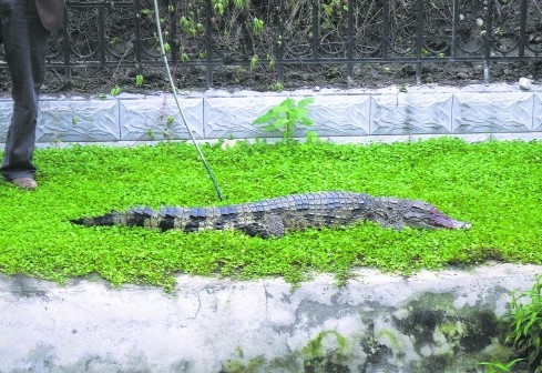 鋒利的牙齒、強(qiáng)大的撕咬能力,兇猛的鱷魚(yú)令人望而生畏。昨天,一條本打算運(yùn)往重慶喂養(yǎng)的鱷魚(yú),莫名其妙地在溫江開(kāi)發(fā)區(qū)某公司停車場(chǎng)內(nèi)失蹤了。是被“好吃嘴”偷走了,還是逃脫了?43斤重、將近兩米長(zhǎng)的大活鱷魚(yú)讓大家膽戰(zhàn)心驚———如果傷到人怎么辦?經(jīng)過(guò)地毯式搜尋,巡邏隊(duì)員昨日傍晚終于在路邊的水溝中找到了逃脫的鱷魚(yú)……