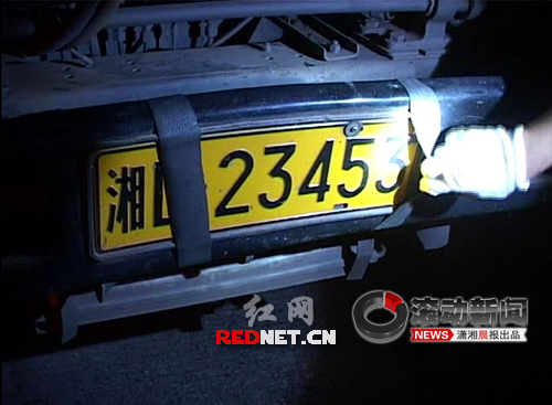 隨后,民警又?jǐn)r下一輛大貨車。這輛車不僅車尾沒有懸掛號牌,前面也做了手腳。司機(jī)用兩副皮筋遮住了前牌照,遮住了末尾一個(gè)數(shù)字,還在歸屬地來了個(gè)“貍貓換太子”,湘D變成了湘L!