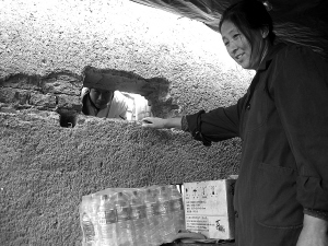 省實(shí)驗(yàn)中學(xué)南側(cè)是一道高大的磚石院墻,但仍擋不住小攤食品。記者看到,院墻被掏開一個(gè)小洞,洞南邊是一個(gè)用帆布臨時(shí)搭建的小棚子,棚子里擺著飲料、香腸、方便面,女?dāng)傊髡褞灼匡嬃享樦催f給那邊的學(xué)生。僅10分鐘,女?dāng)傊鞅阗u出了20多瓶飲料。
