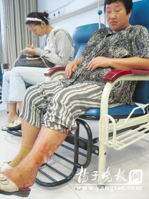 記者在醫(yī)院看到,周大媽左腳上被狗咬出了兩個(gè)深深的洞,左腿小腿肚子上也是鮮血淋漓,被醫(yī)用紗布包扎著,“腿肚子縫了三針!敝艽髬尩睦习楦嬖V記者,他們到醫(yī)院后已經(jīng)交了兩千塊錢醫(yī)藥費(fèi)了,民警讓他們先看病,費(fèi)用肯定是要跟狗主人算的。他還告訴記者,周大媽是一名腫瘤患者,平時(shí)身體就不好,這次被狗咬傷了,又是掛水又是打疫苗,還不知道對(duì)腫瘤的治療有沒有影響。