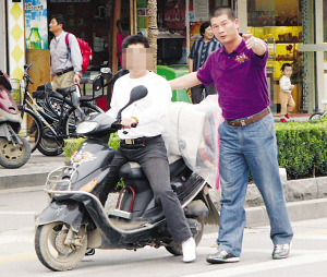 看到前方路口有交警執(zhí)勤,助力車手在車流中來個(gè)急剎車,然后匆忙掉頭,不顧危險(xiǎn)加速逆向而去。相信不少市民都曾目睹過這驚險(xiǎn)一幕,交警對此也顯得很無奈:不查處,快車道上的助力車時(shí)常惹禍;可一旦查處,往往會出現(xiàn)以上場景,十分危險(xiǎn)!拔覀兿氲搅吮阋潞徒痪浜蠄(zhí)法這一招,一個(gè)在前,一個(gè)在后!蹦暇┙痪拇箨(duì)有關(guān)負(fù)責(zé)人昨天下午在查處現(xiàn)場告訴記者,從運(yùn)用的效果來看,這招挺管用。不過被查處的市民則一肚子委屈,稱以為遇到壞人了,而且這也有“隱蔽執(zhí)法”的嫌疑。