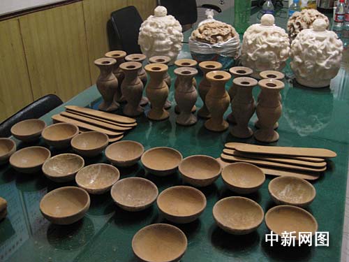 這一情況,引起了新華公安分局巡邏民警的注意。經(jīng)過兩天的跟蹤、蹲守,22日下午14時許,新華公安分局一中隊民警按照預(yù)定抓捕計劃,將這一購、改、銷一條龍式的“古董”詐騙團伙9名涉案人員全部抓獲,繳獲大量假古董,其中尚未加工完成的十二屬相初品42個,加工完成尚未售出的成品4個,花瓶14個,石碗18個,石圭10個,石枕頭1個,以及一些造假用的樹脂材料等。