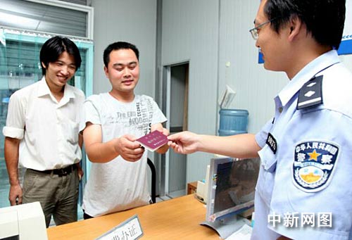 中新網(wǎng)舟山10月1日電 (記者 袁爽) 今天是《浙江省流動(dòng)人口居住登記條例》正式實(shí)施的日子,在浙江舟山市做鋼筋工的安徽省阜陽小伙子周懷逸一大早便趕到當(dāng)?shù)嘏沙鏊,來領(lǐng)取這張夢(mèng)寐以求的居住證,從今往后,最為新居民的周懷逸將和當(dāng)?shù)厝讼碛型鹊纳鐣?huì)保障、公共服務(wù)等具體方面的待遇。
