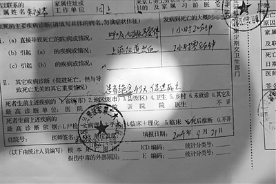 在261醫(yī)院的記錄單上寫著,患者于3點55分入院,跟隨人員向搶救人員訴說,40分鐘前,患者因上消化道大出血,導(dǎo)致呼吸、心跳驟停,經(jīng)過心肺復(fù)蘇等救治后恢復(fù)心跳和呼吸。雖然搶救人員全力救治,祁長江在凌晨4點半左右被宣布死亡。