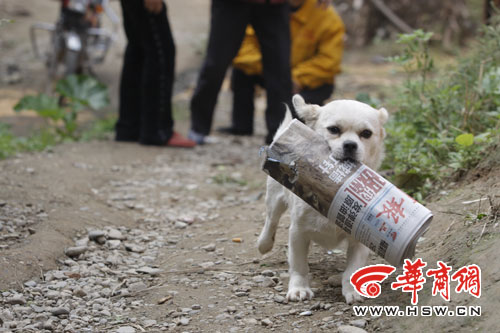 每天上午9時(shí),給李爺爺家送華商報(bào)的投遞員張躍進(jìn),會(huì)準(zhǔn)時(shí)到達(dá)位于西安市南郊的東三爻堡!皥(bào)紙來(lái)咧!”站在李爺爺家門(mén)前一段50多米長(zhǎng)的坡路下,張躍進(jìn)會(huì)扯著嗓子吆喝一句。幾秒鐘后,張躍進(jìn)和周?chē)泥従颖銜?huì)看到,一條黃白相間的小狗,從坡路上飛快地跑來(lái),用嘴叼起張躍進(jìn)遞來(lái)的報(bào)紙!翱烊!把報(bào)紙給爺爺。”聽(tīng)了張躍進(jìn)的話,小狗花花扭身徑直跑到李爺爺跟前,把報(bào)紙交到老人手中。