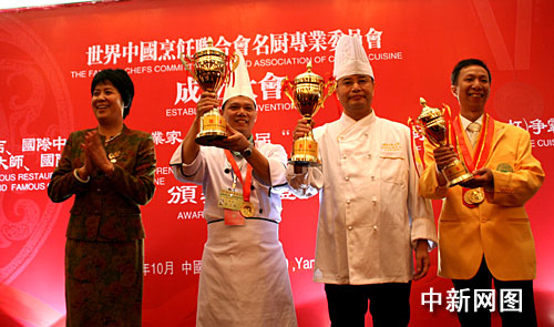 來自韓國、新加坡、荷蘭、日本、美國等10個(gè)國家及地區(qū)的40名廚師,經(jīng)過激烈的角逐,經(jīng)世烹聯(lián)國際評委分別從“味道”、“質(zhì)感”、“觀感”和“衛(wèi)生”四個(gè)方面,評出最佳創(chuàng)意獎(jiǎng)、最佳造型獎(jiǎng)各1人和國際中餐廚王金獎(jiǎng)9人、銀獎(jiǎng)12人和銅獎(jiǎng)12人。澳門廚師張志歡、福建廚師胡滿榮、 澳門廚師呂家祥位列前三名,分別榮獲冠軍、亞軍、季軍。同時(shí),臺(tái)北開平餐飲學(xué)校15歲學(xué)生宋浩廷)獲大賽最佳創(chuàng)意獎(jiǎng)、韓國金賢姬獲最佳造型獎(jiǎng)。