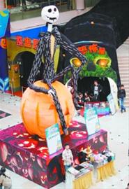 沈陽(yáng)中街的一個(gè)大型商場(chǎng),“鬼怪”儼然變成促銷手段,“恐怖屋”、“整蠱屋”、“挑戰(zhàn)僵尸競(jìng)技場(chǎng)”悉數(shù)亮相。記者看到,促銷員都身著長(zhǎng)及腳面的黑袍,從脖子到小腿處是一副完整的白骨圖案。冷不防一看,挺嚇人的。