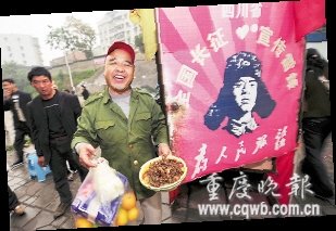 前日,劉光建離渝前往四川,人稱“活雷鋒”的他,發(fā)誓要走遍全國,用擦鞋招徒來宣傳雷鋒精神!霸谥貞c近兩月,發(fā)現(xiàn)重慶人個個是熱心人。”劉光建告訴記者。