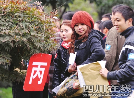 “喝著鹽水聊天!喝著鹽水聊天!有沒有人接暗號?”“說話凈閑(咸)扯!終于找到你們了!弊蛉障挛3點,成都高新區(qū)大型公益單身青年聯(lián)誼會在有趣的拓展訓(xùn)練中拉開帷幕。盡管是周末,但高新區(qū)孵化園露天中心廣場卻人頭攢動,好不熱鬧。三人一組的單身白領(lǐng)冒著冬雨,頂著寒風(fēng),站在現(xiàn)代化的樓宇間,口里齊聲喊著一些奇怪的詞組。原來,現(xiàn)場趕來的600多名單身青年們隨機分成了若干小組,正在參加moving&meeting(找朋友)的拓展游戲。通過地圖找到指定地點,喊著接頭暗號,兩個陌生的小組重新組成一個大組,然后進(jìn)行新一moving&meeting(找朋友)游戲。最終8個三人小組組成了一個團(tuán)隊,原本陌生的24個人在游戲中相互認(rèn)識、一起完成游戲任務(wù)。隨即,團(tuán)隊間進(jìn)行了“幸福團(tuán)團(tuán)轉(zhuǎn)”、“迎接新娘”等趣味游戲。