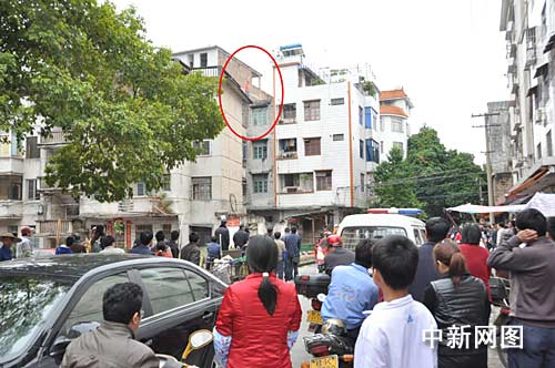 現(xiàn)場群眾說,該男子大概是中午12點左右上到樓頂,剛開始還以為是宿舍樓的住客,后來看到男子坐在樓頂邊緣將手機(jī)、錢包還有一張紙條丟到樓下馬路。